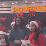 A group of vulgar Christmas carolers stunned shoppers in front of the Popeyes Fried Chicken restaurant at Wolfchase Galleria over…