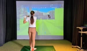 There will be three booths with projectors that include a variety of courses to choose from. Players will use real golf clubs and golf balls. However, unlike traditional golf, virtual golf takes much less time.