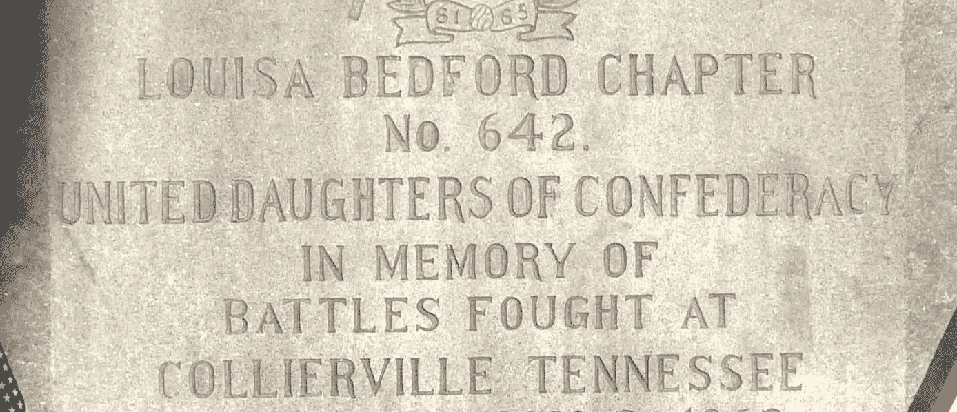 he marker that protesters want to be removed commemorates the Civil War battles fought in Collierville. It was placed in the town square by the United Daughters of the Confederacy.