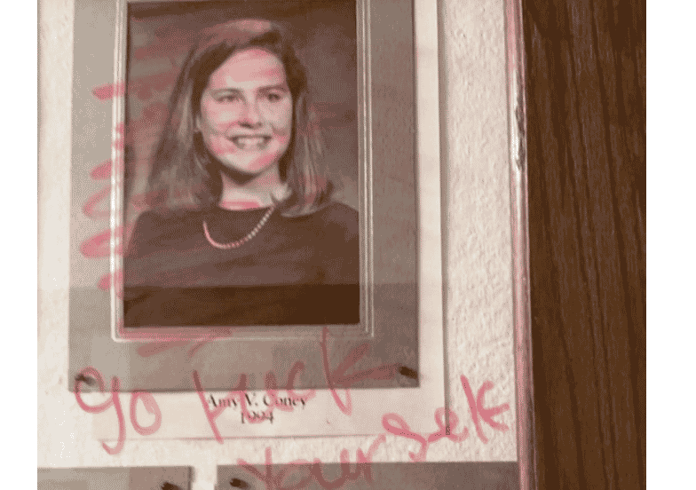 Justice Barrett Portraits Desecrated at Rhodes College