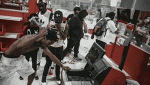 The Lake Street Target was nearly destroyed by rioters – who pillaged and plundered nearly the entire store. An untold number of thieves were spotted running out of Target with clothes, groceries and flat screen television sets.