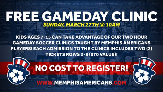 7:50am- Memphis Americans Head Coach & General Manager Corey Adamson talks with Tim & Ben about this Sunday’s games & FREE Soccer Clinic for all youth this Sunday. Sign up for FREE here.